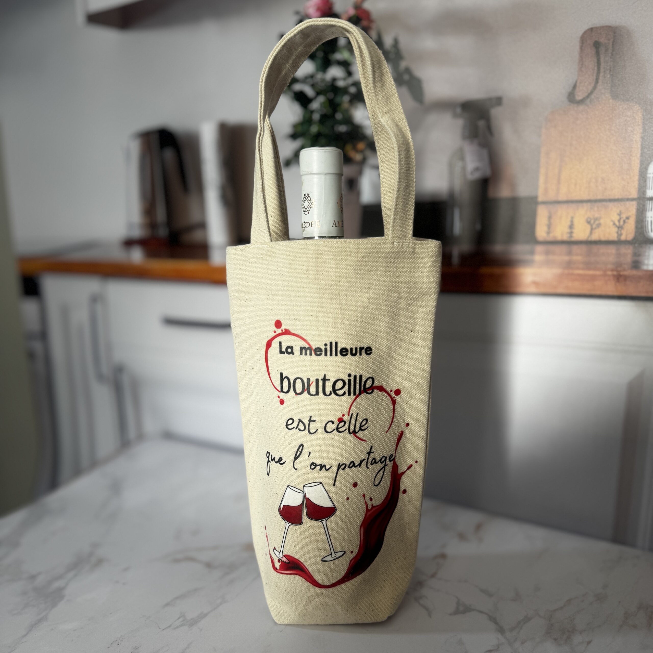 Offrez vos bouteilles avec classe grâce à notre sac à bouteille en coton personnalisé.